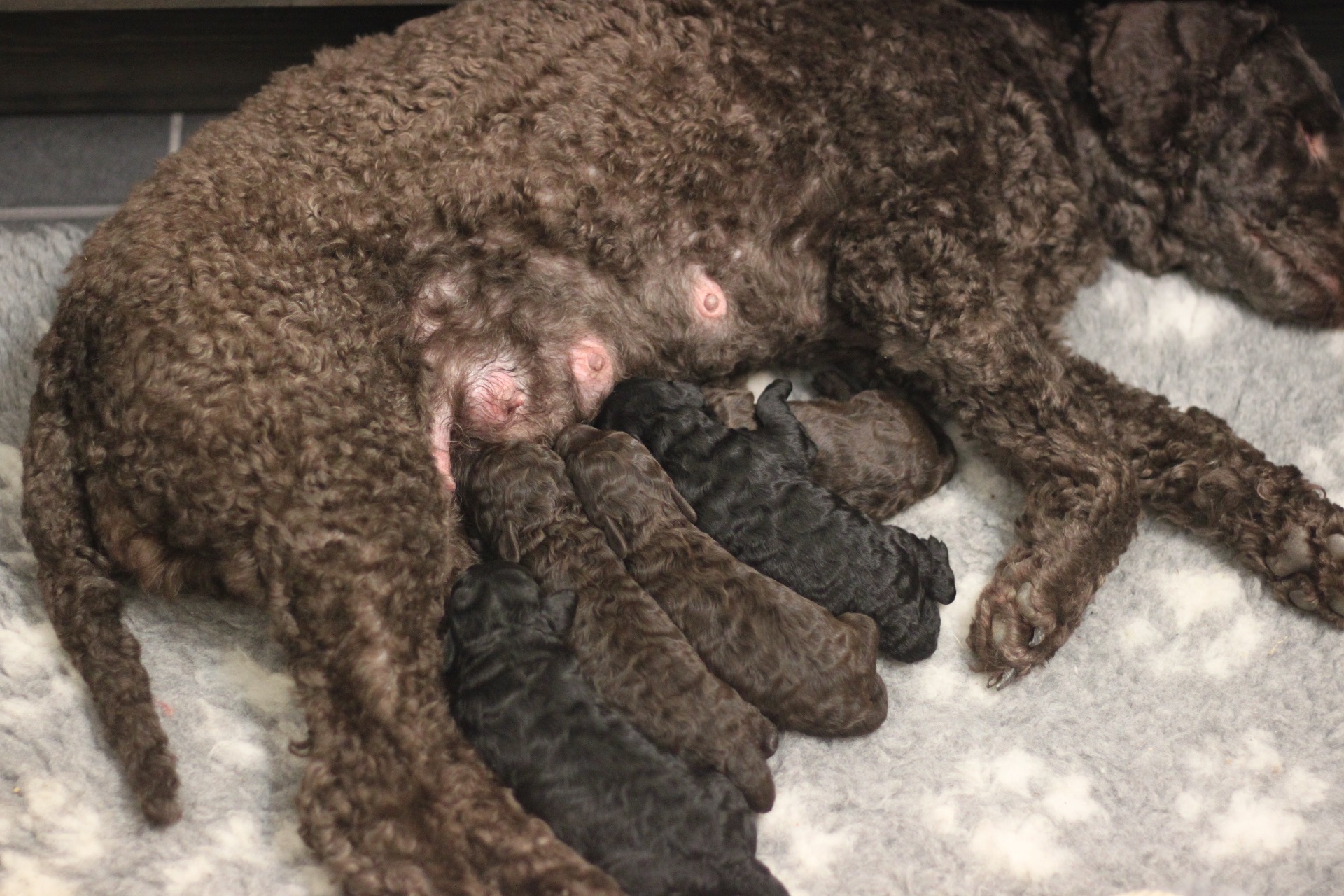 Pentuarki on alkanut hyvin. Pinni on huolehtivainen äiti ja pennut kasvavat tasaisesti: osa nopeammin ja toiset hitaammin. Syntyessään kaikki pennut painoivat n.200g, mutta tällä hetkellä meillä näyttäisi olevan kaksi vantteraa pentua ja kolme sirppanaa. Musta poika ja ruskea tyttö ovat ne vantterat, ja loput ovat hentoisempaa sakkia.