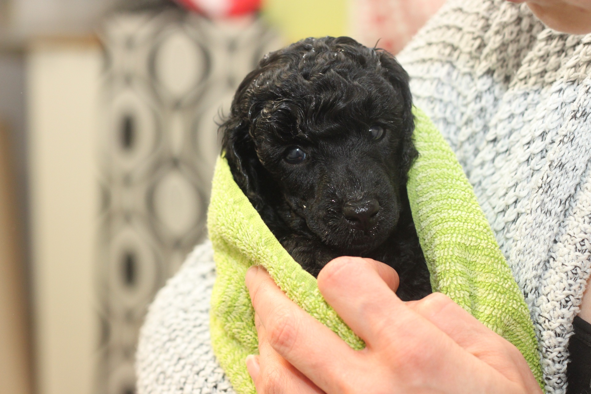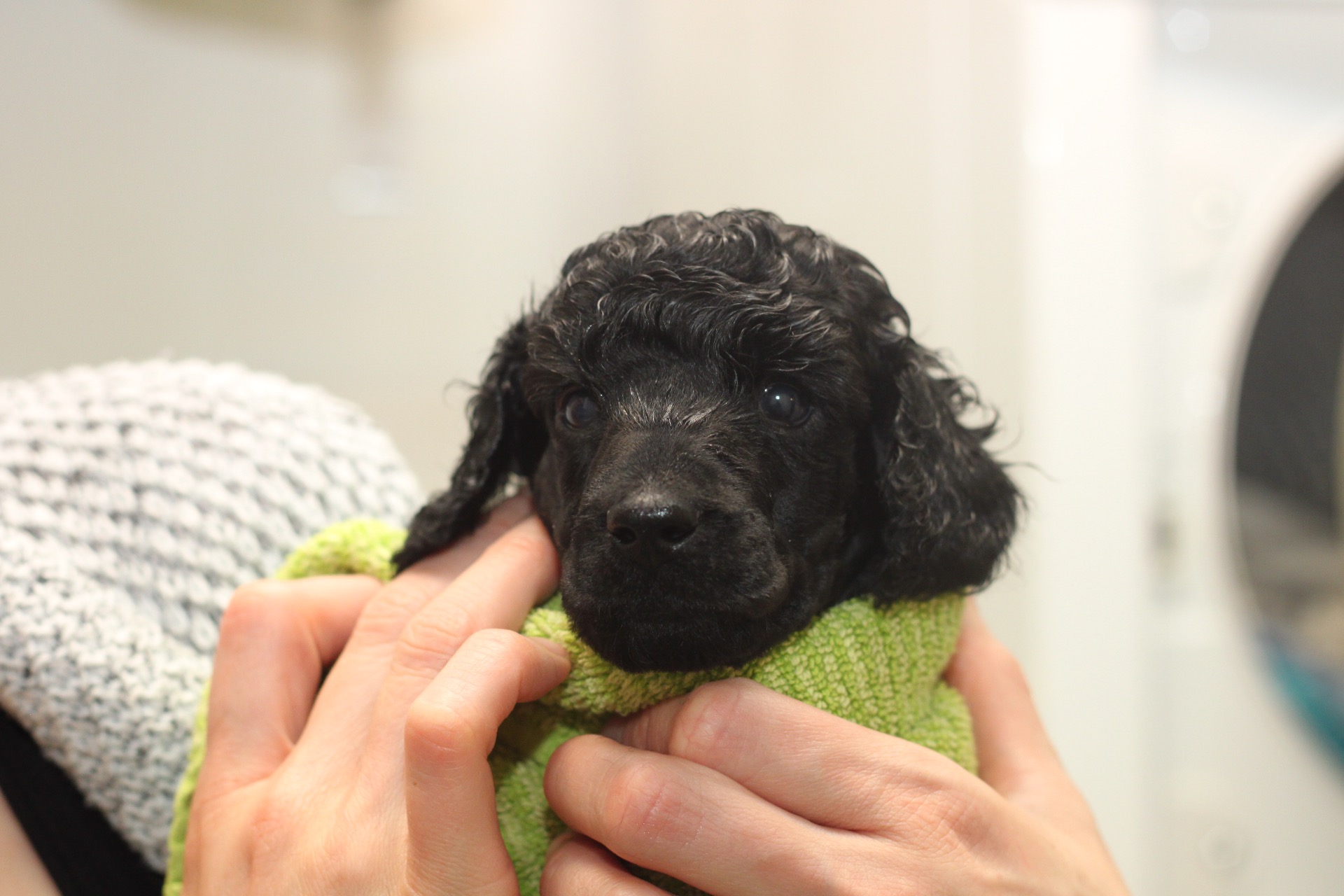 Eilen pentujen naamat taas siistittiin, pennut pestiin ja föönattiin.